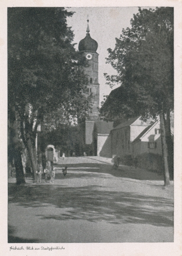 Aichach, Blick zur Stadtpfarrkirche ngl 109.301