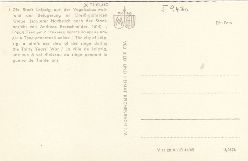 Alt-Leipzig, Vogelschau z.Zt.des 30-jährigen Krieges ngl F9430