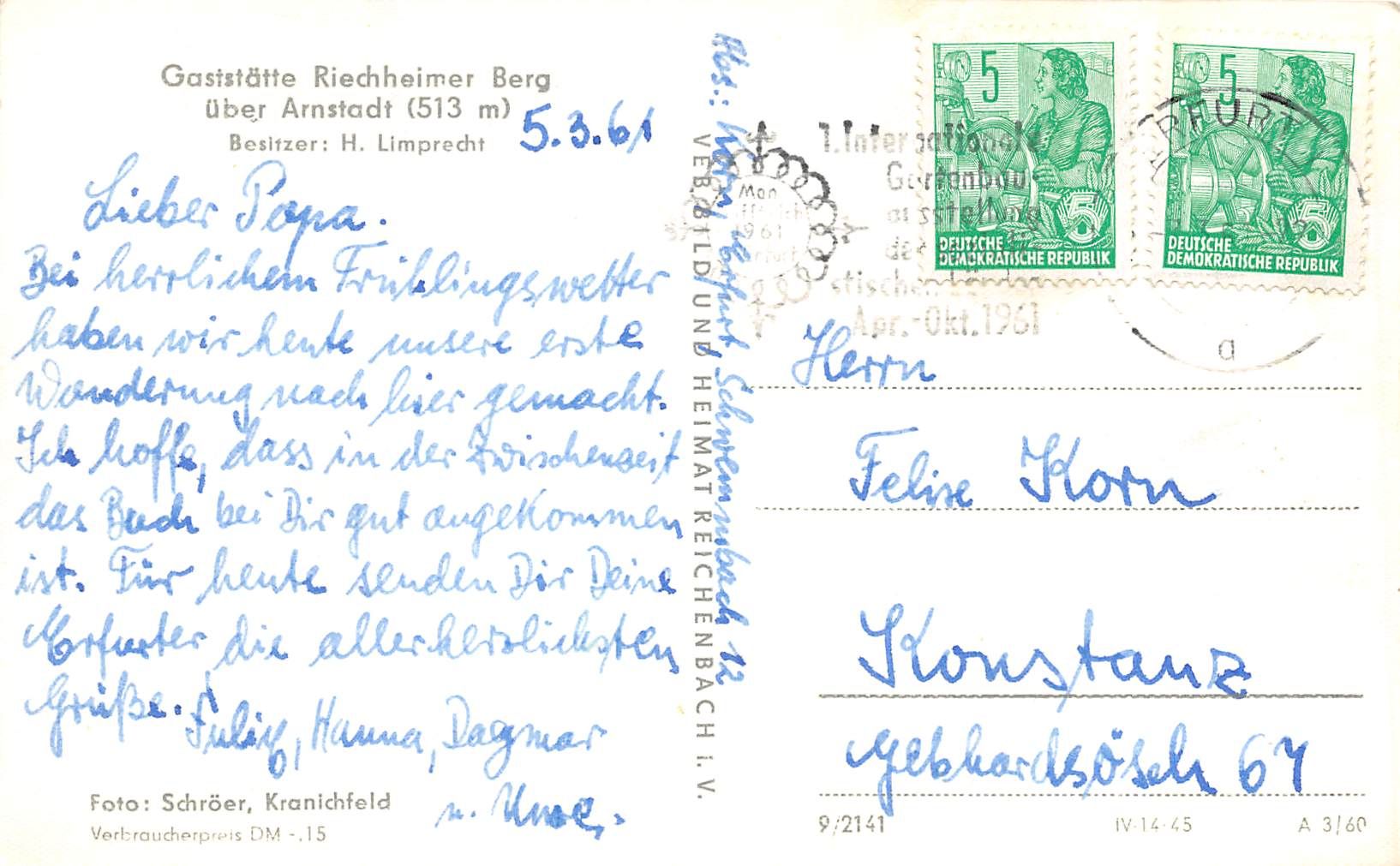 Arnstadt gaststätte Riechheimer Berg gl1961 177.897
