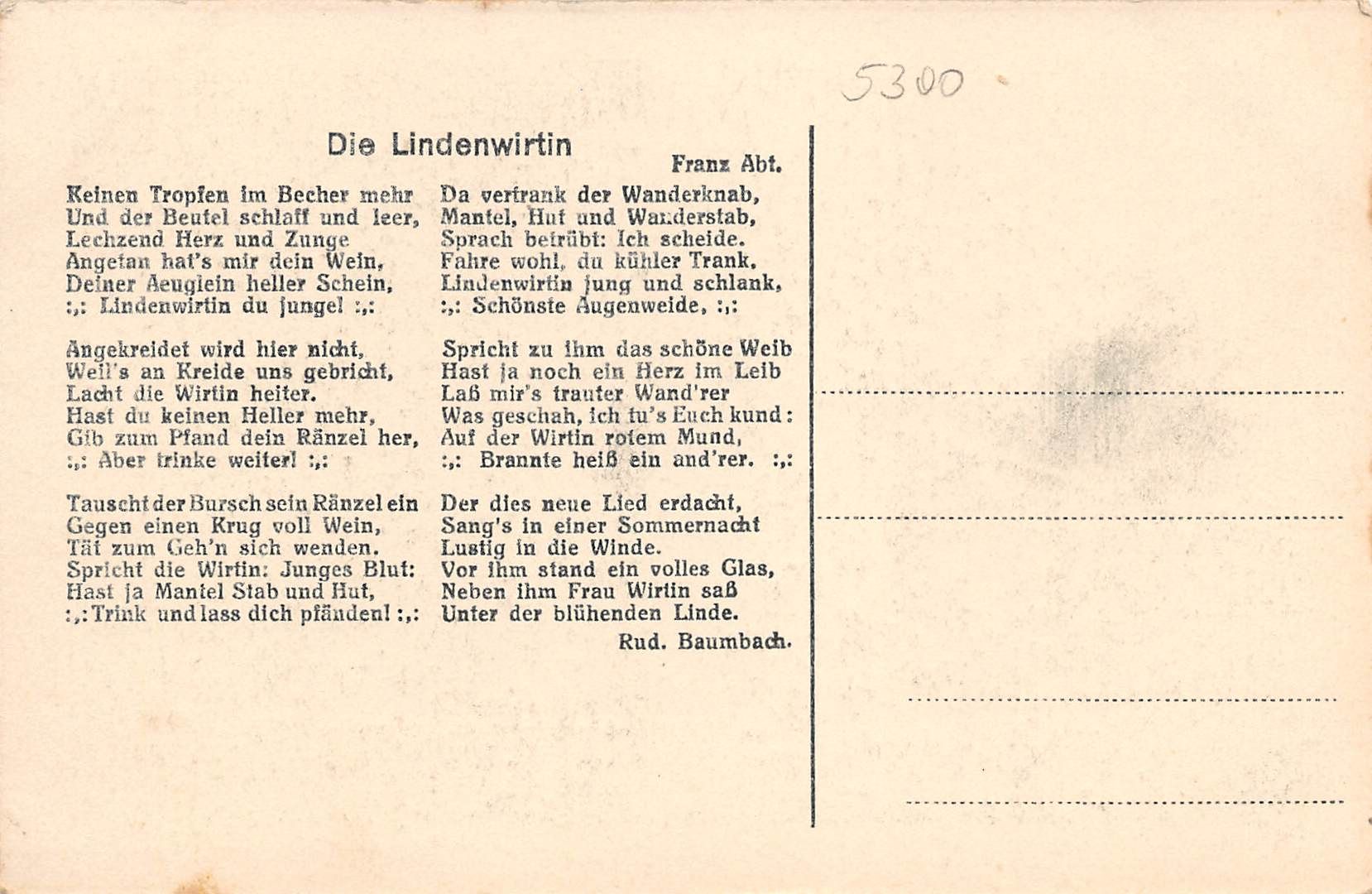 Rückseite mit Gedicht "Die Lindenwirtin"