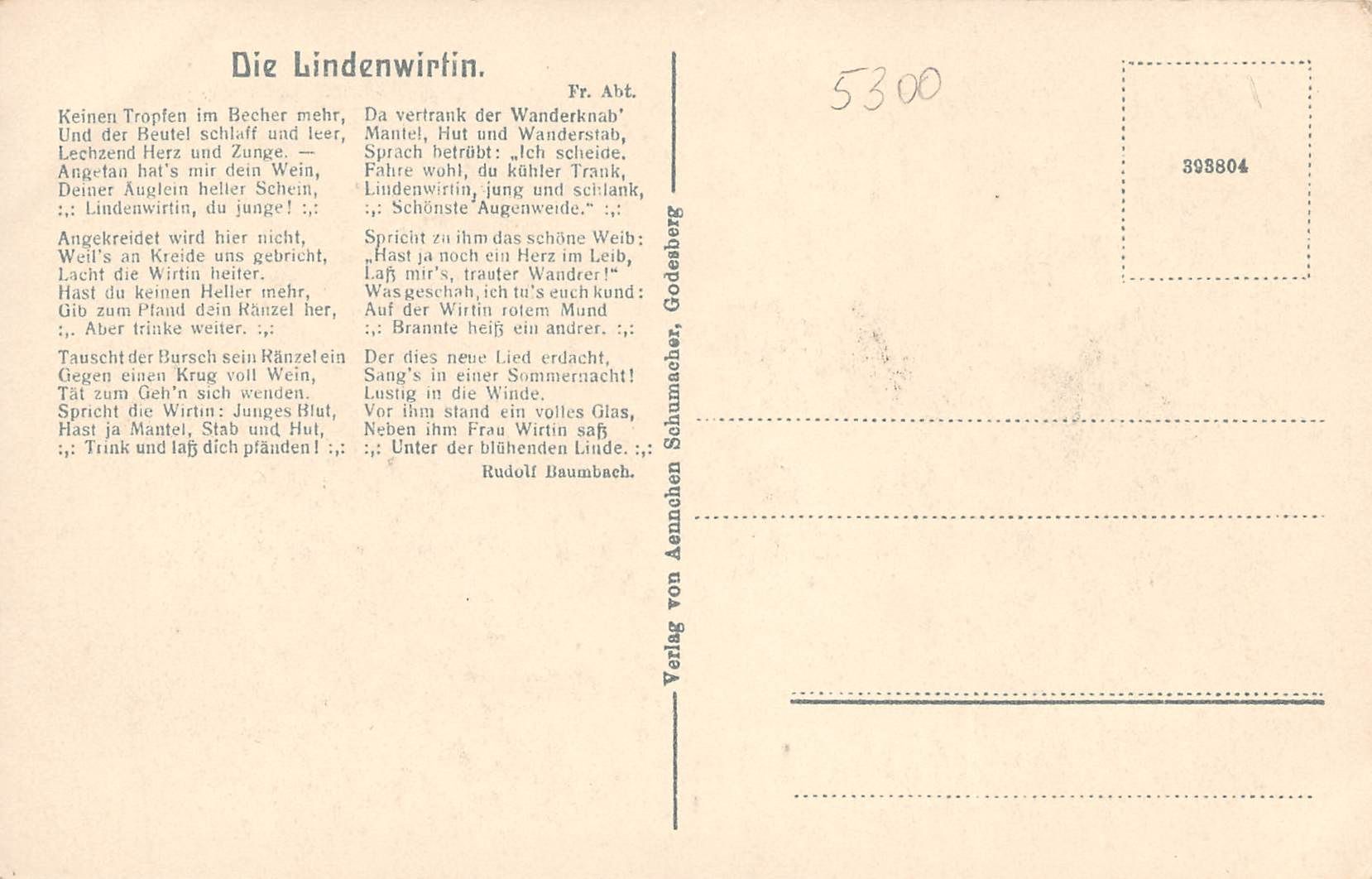 Rückseite mit Gedicht "Die Lindenwirtin"