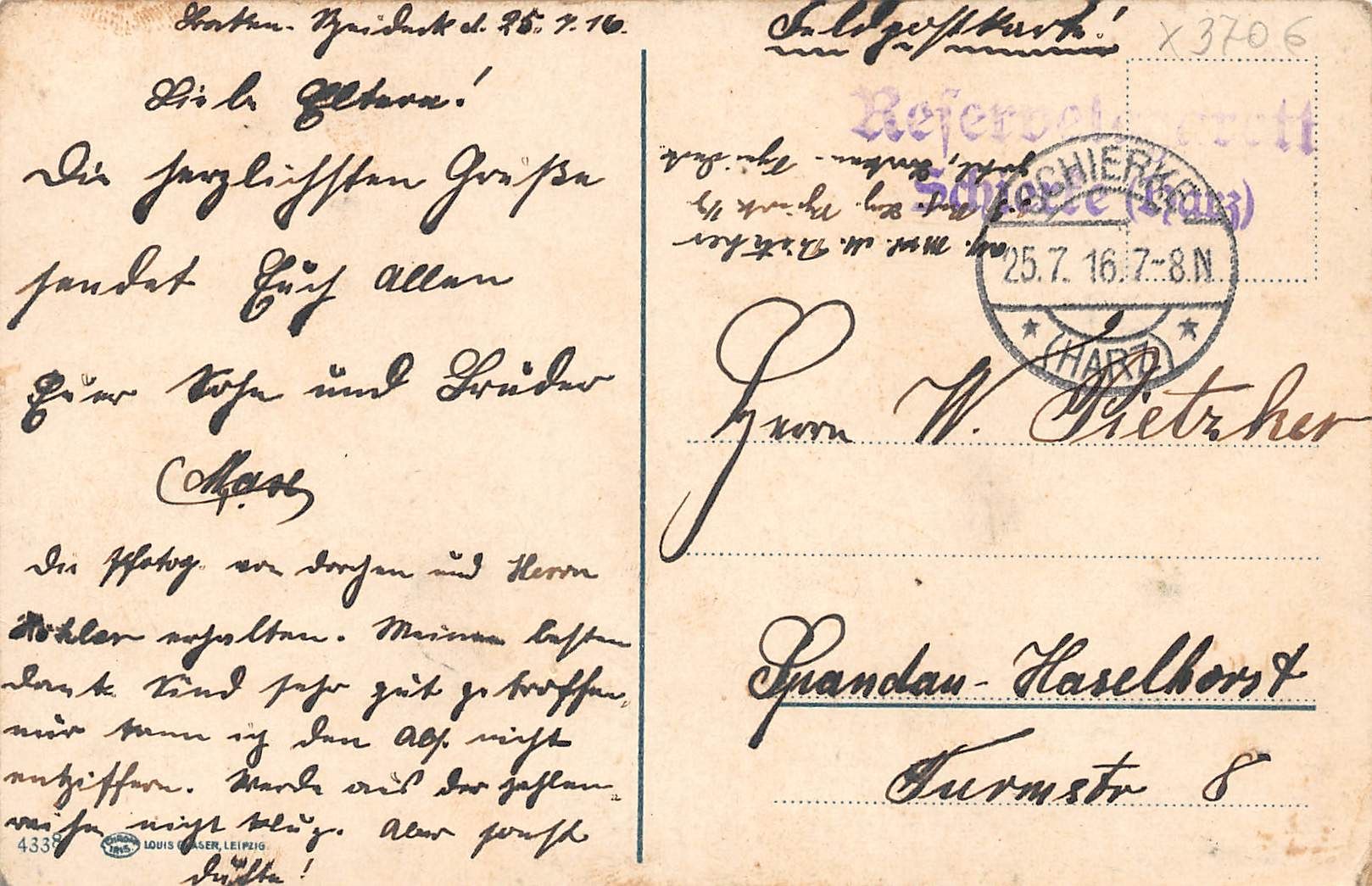 mit Briefstempel "Reservelazarett"