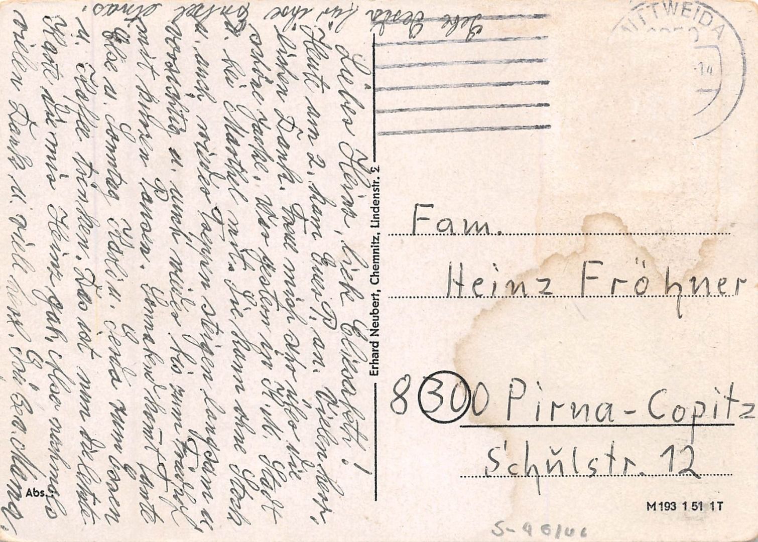 Karte rückseitig etwas fleckig ...