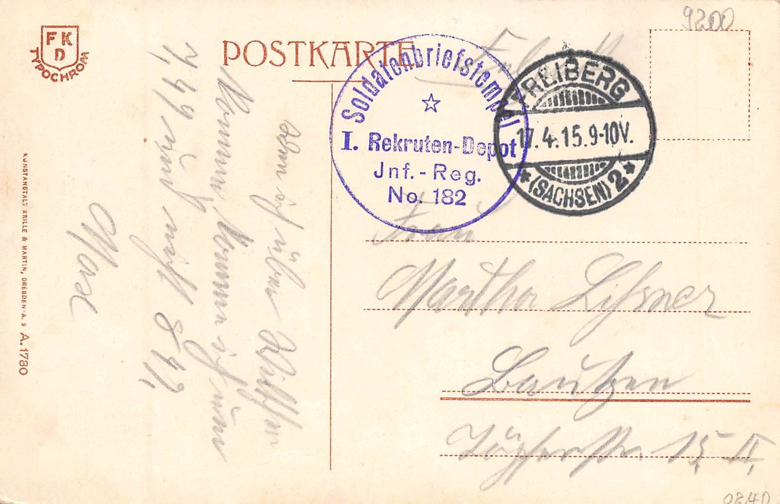mit Militär-Briefstempel "I. Rekruten-Depot…"