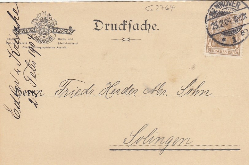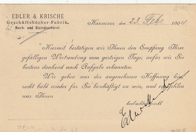Hannover, Edler & Krische, Empfangsbestätigung gl1904 G2763