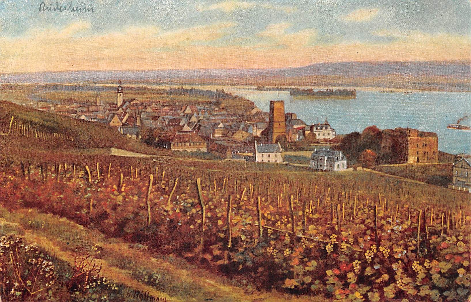 Rüdesheim a. Rhein Panorama Künstlerkarte sign. H. Hoffmann ngl 193.769