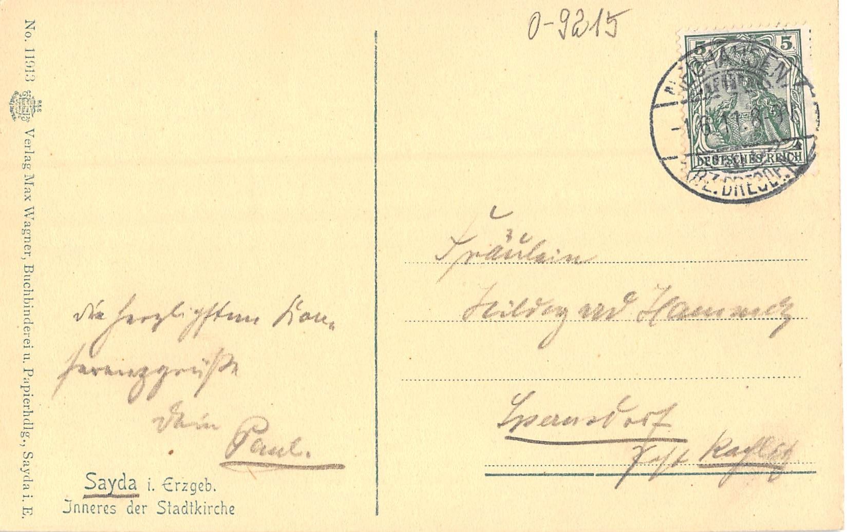 Sayda i.Erzgebirge Inneres der Kirche gl1911 193.308