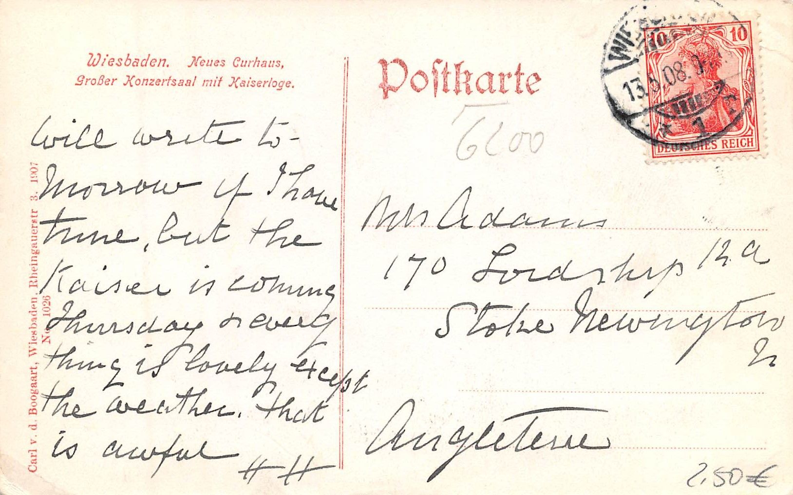 Wiesbaden Kurhaus Großer Konzertsaal gl1908 193.658